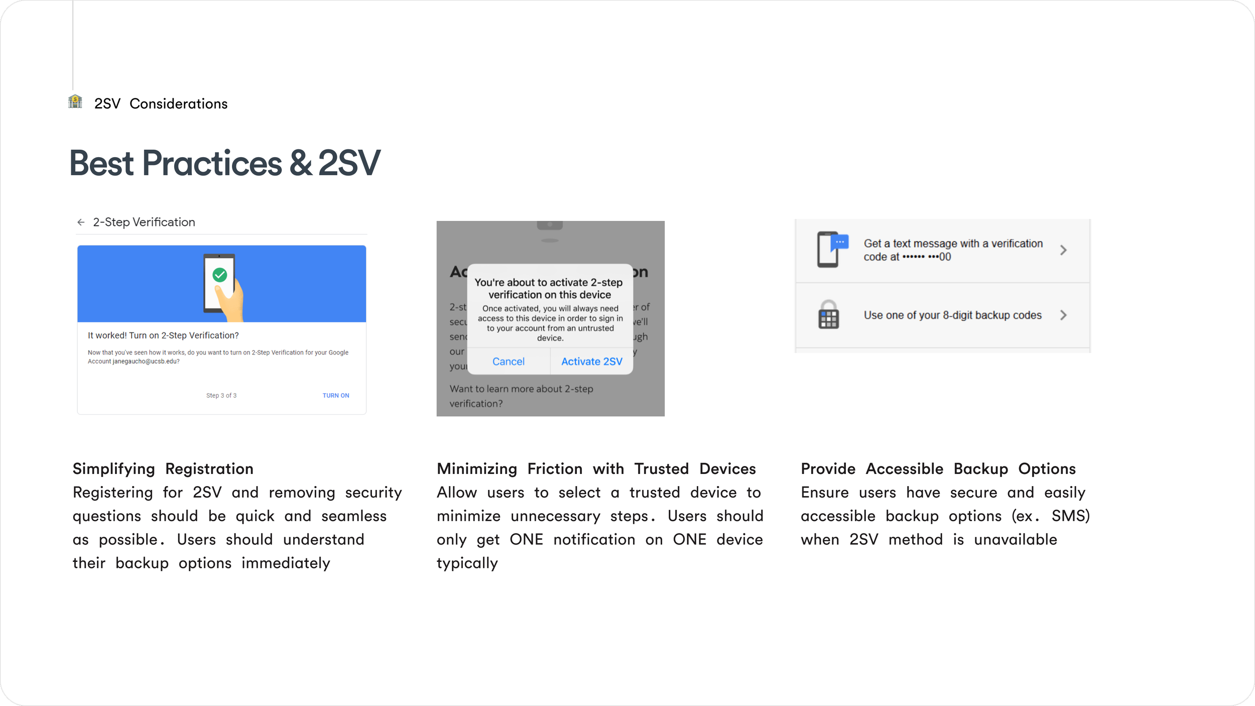 I learned that in security-critical flows, it’s not enough for users to finish a task. They need to understand what’s happening and what their choices mean, as it affects their sign-in process every time they return.