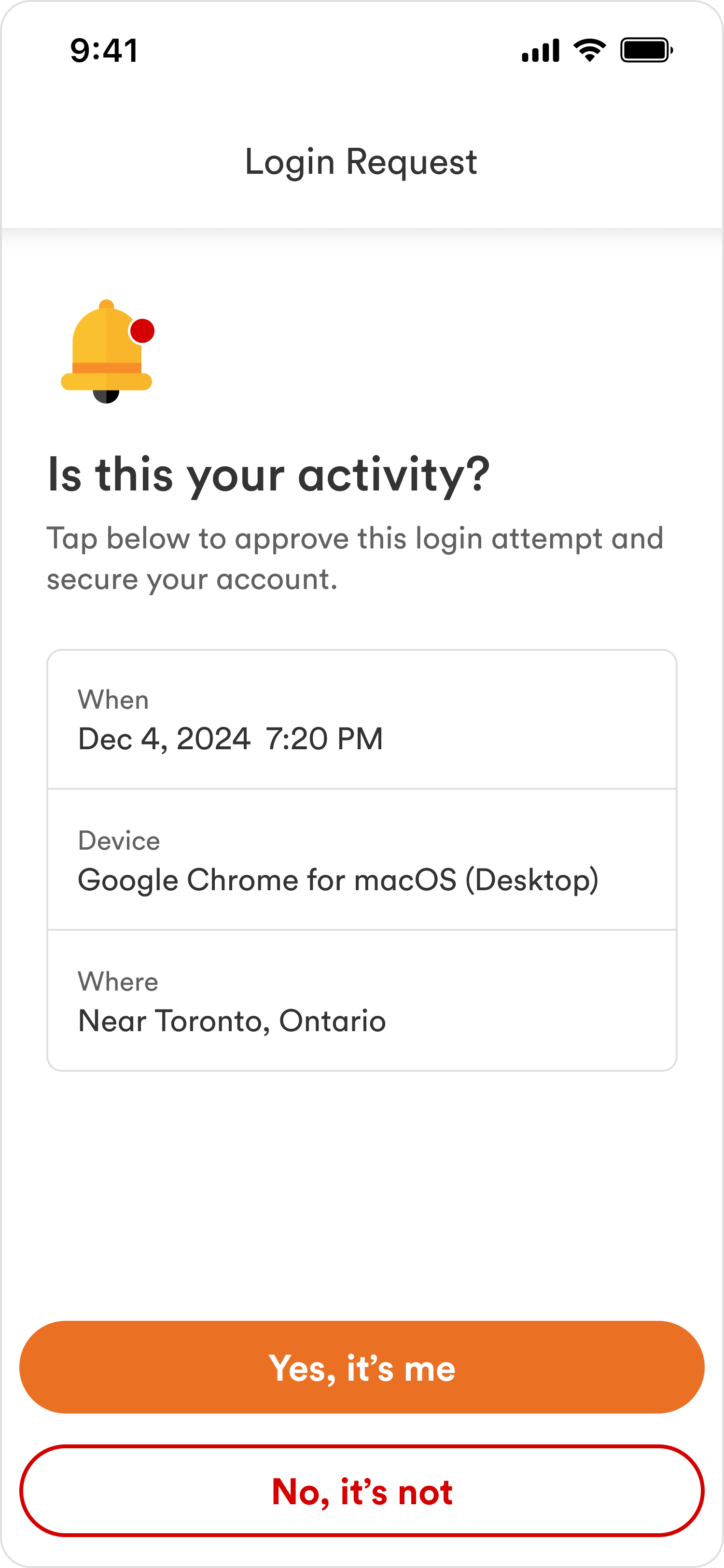 Login & approval journeys: time-sensitive, stress moments where users are trying to access their account or confirm whether an attempt is legitimate