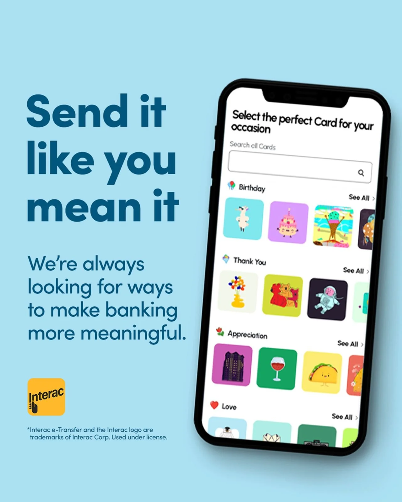 So what does this mean for the average e-transfer user? Soon, they'll have the ability to personalize their transfers with templates for every occasion.